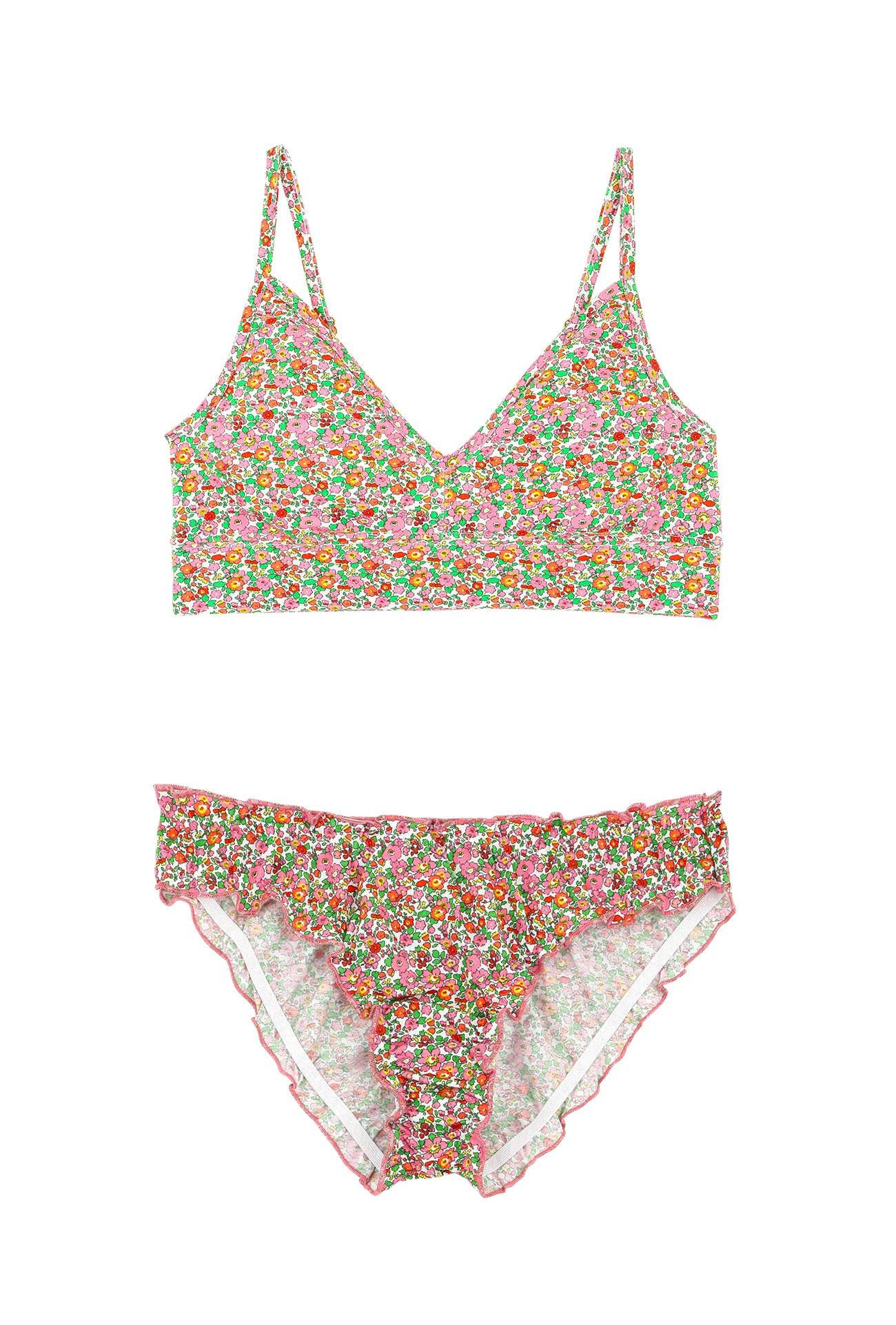 - Une brassière à l’imprimé Liberty avec des bretelles ajustables, une large bande de maintien sans armature