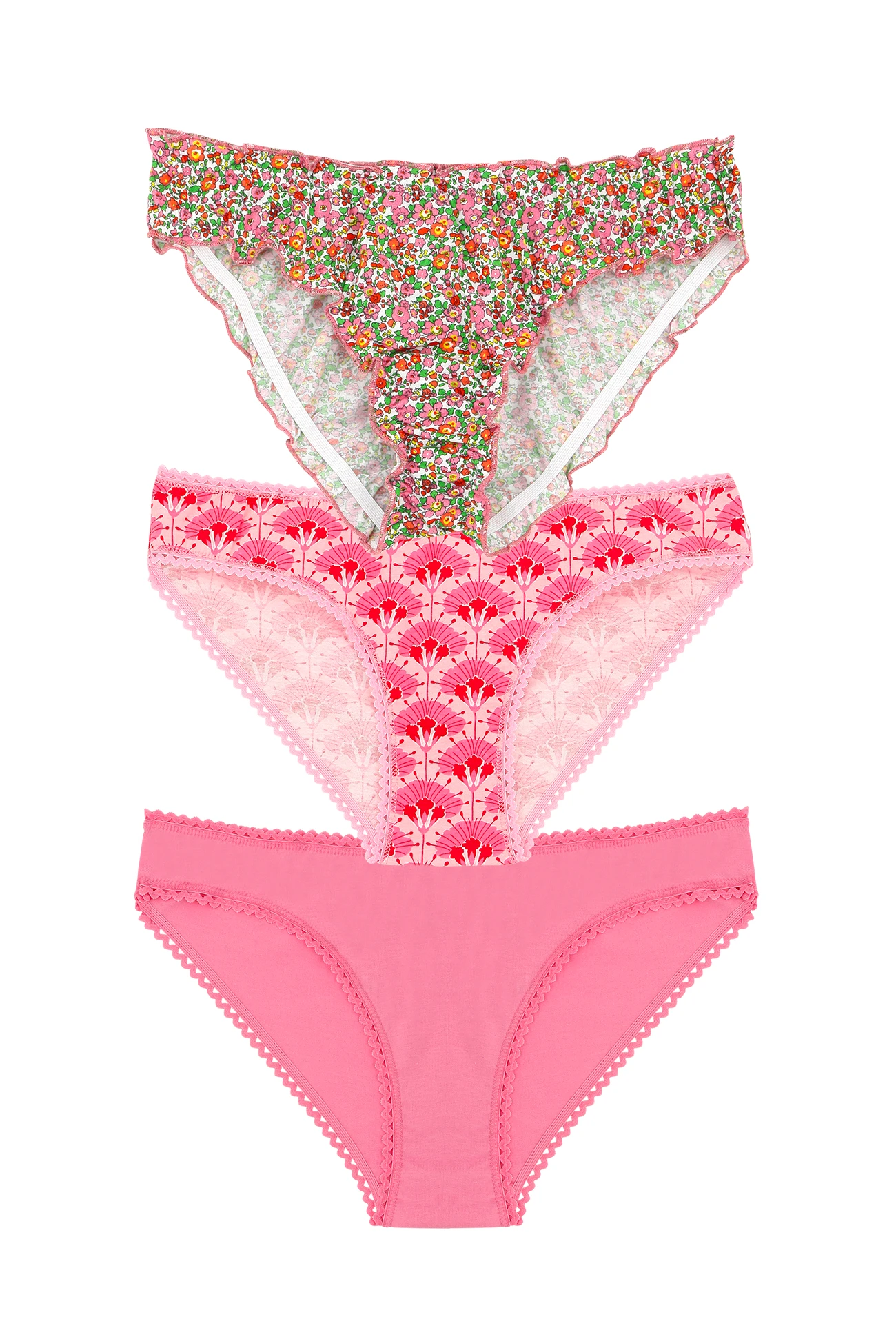 - 3 culottes : Bloomer Fleurs Liberty, Culotte Fleur de Paon Rose, Culotte Rose