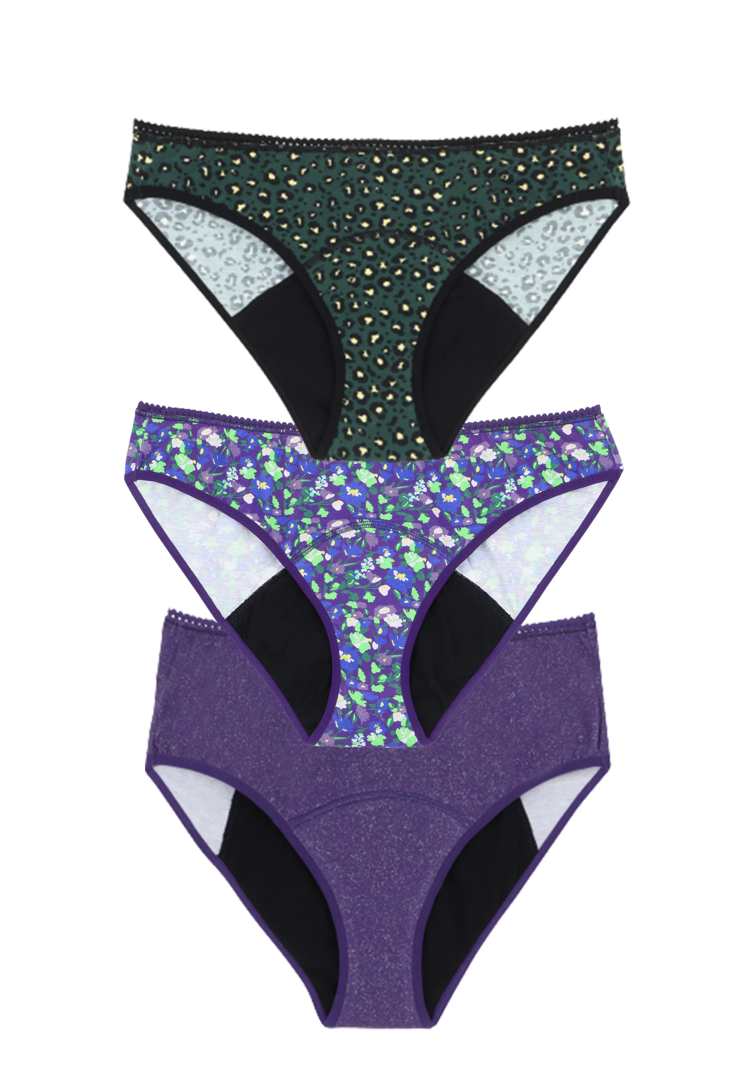 - 2 culottes flux abondant : Léopard Green et Rainbow Green
