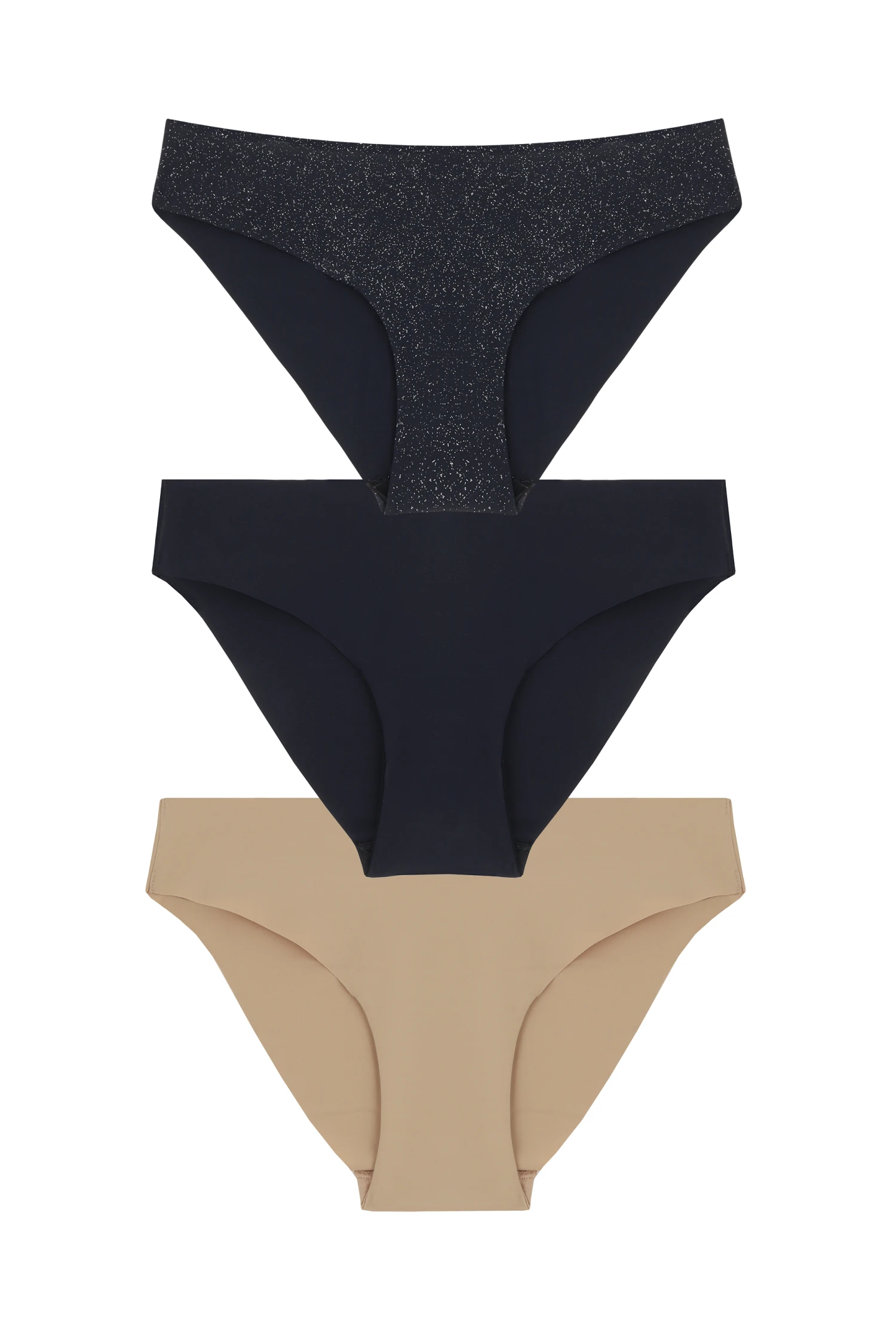 - Lot composé de 3 culottes sans couture : beige, noir, paillettes noir