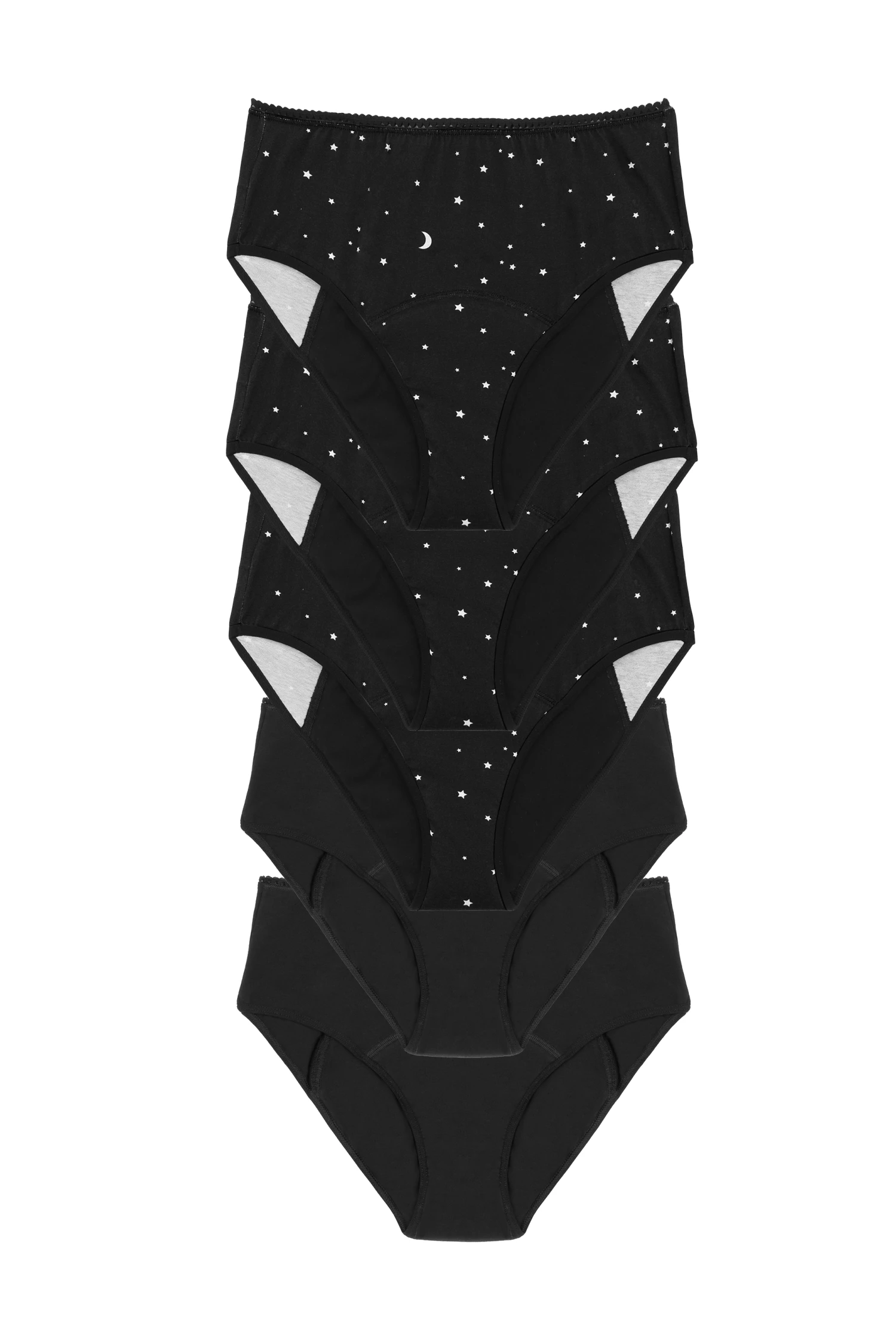 - 5 tailles hautes menstruelles : 3 Astro + 2 Pirate Black