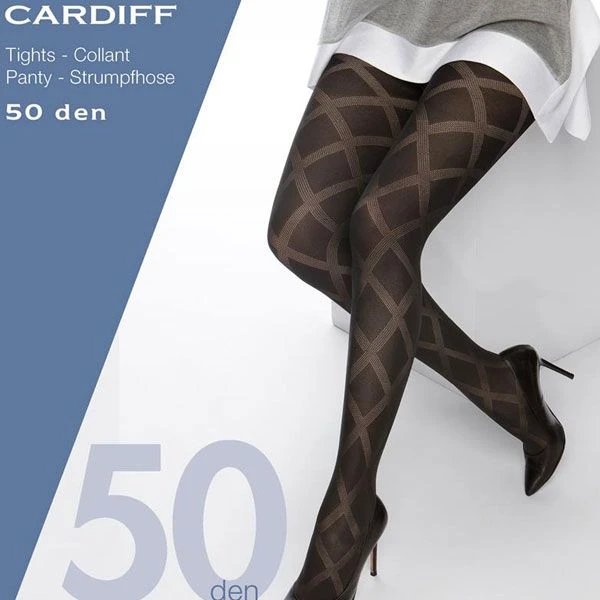 Cardiff est un collant fantaisie grande taille à motifs en forme de losanges. Les rayures larges plus claires contrastent avec le noir opaque du collant et lui confèrent un style moderne et sobre à la fois. Proposé du 46 au 60 il protègera aussi les jambes des effets de l’hiver grâce à sa finesse de 50 deniers.