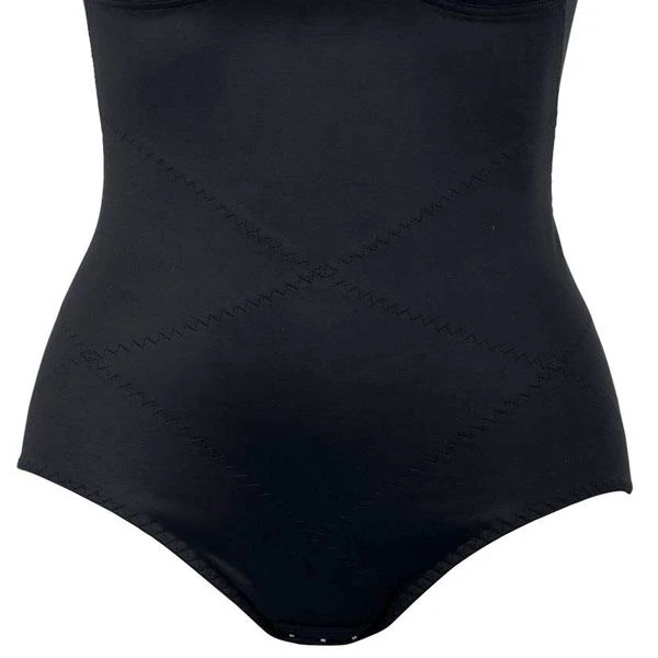 De larges bandes renforcées, croisées sur la partie ventrale maintiennent le ventre et soulagent le dos tout en assurant un effet galbant et décontractant.