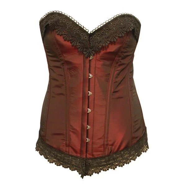Corset en soie couleur marron avec en bordures une superbe dentelle foncée…60% SOIE pour lui donner une subtile brillance !!!