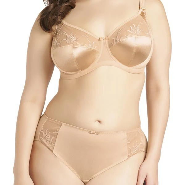 Soutien-Gorge grande taille emboitant en satin relevé de motifs finement brodés, doté d’un excellent maintien, qui allie confort, élégance et d’une discrétion luxueuse.